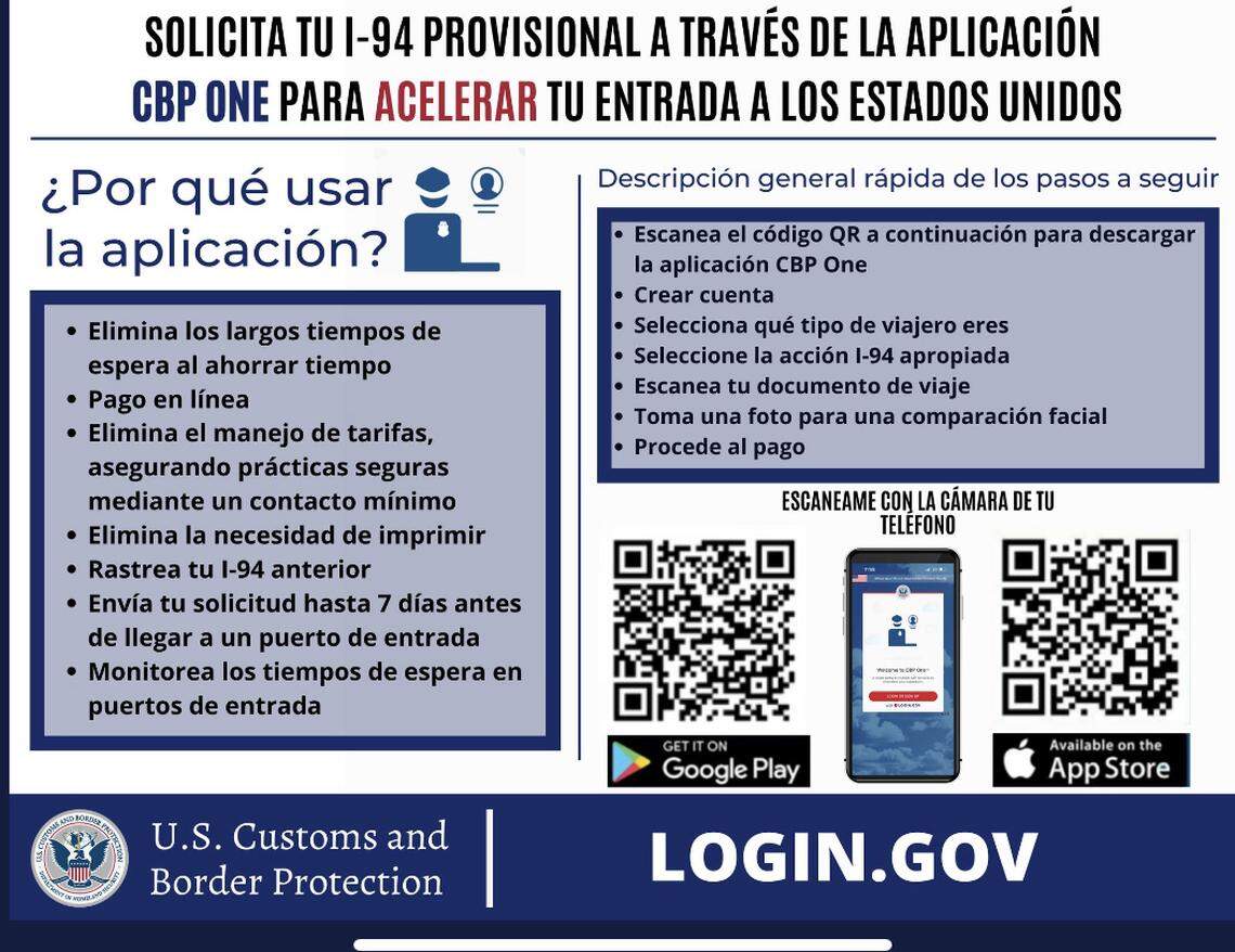 Para los viajeros con pasaportes extranjeros, la aplicación online CBP One garantiza acelerar todo el proceso para solicitar y pagar por adelantado el formulario I-94, el registro de llegada y salida emitido por todas las personas que ingresan en territorio estadounidense, los extranjeros que regresan, los que viajan con visas de inmigrante y la mayoría de los ciudadanos canadienses.