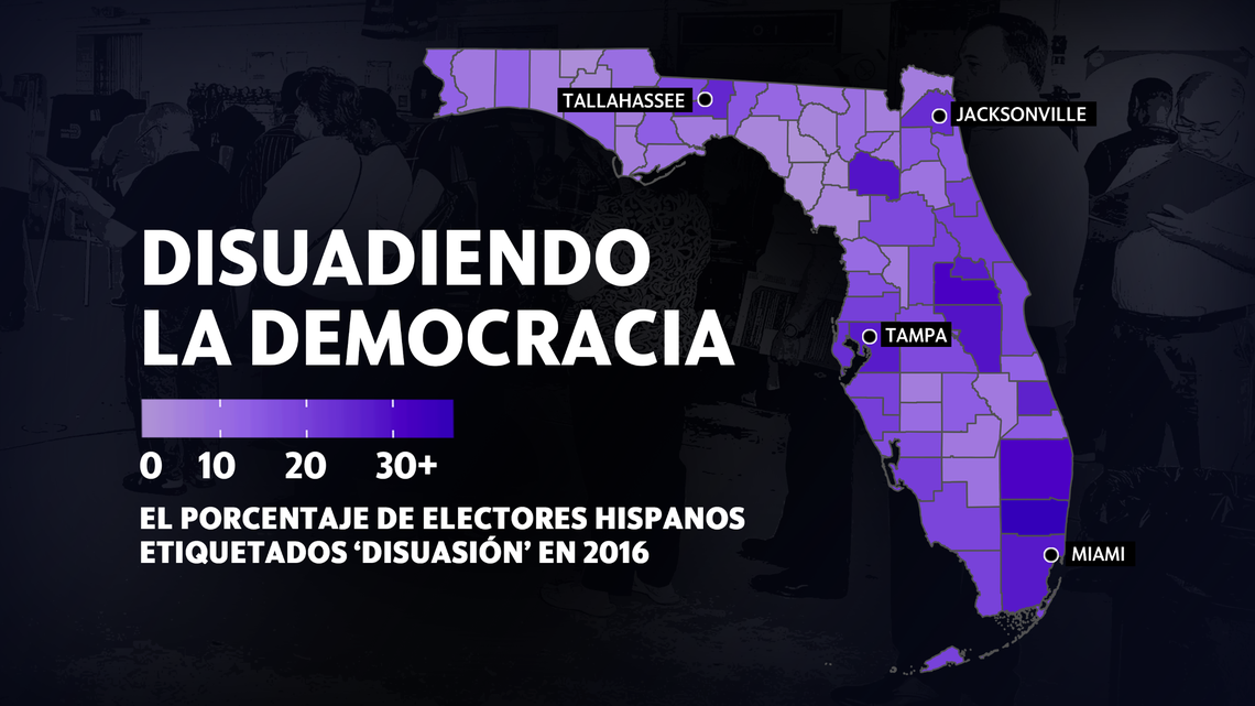Miami-Dade tenía uno de los niveles más altos de disuasión hispana en el estado. El condado de Broward, que tiene una gran población venezolana, y el condado de Orange, donde viven muchos puertorriqueños, también tuvieron altos niveles de disuasión.
